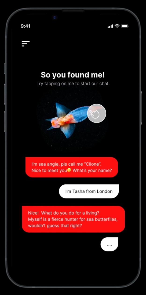 An imaginative AR interface where users could “chat” with marine species, learning facts through conversational play.